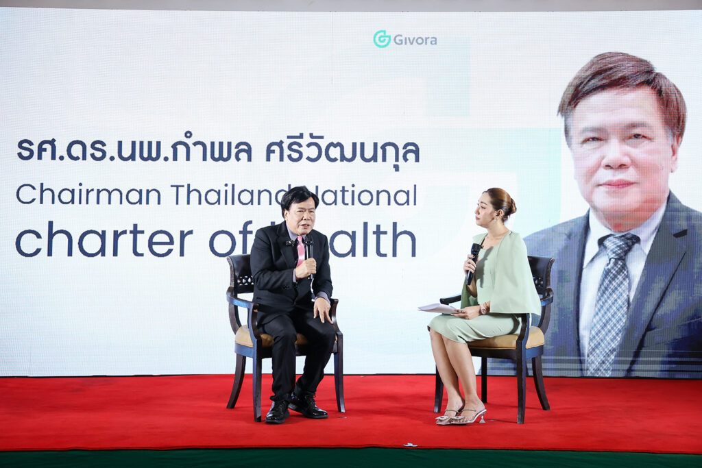 โดยในงานได้รับเกียรติจาก “รศ.ดร.นพ.กำพล ศรีวัฒนกุล” Chairman Thailand National charter of health “คุณเสาวภา จงกิตติพงศ์” นักวิชาการสาธารณสุขเชี่ยวชาญ และรองผู้อำนวยการกองสถานพยาบาลและการประกอบโรคศิลปะ กระทรวงสาธารณสุข “นพ.สุจิตร์ บัญญัติปิยพจน์” แพทย์เฉพาะทางผู้เชี่ยวชาญด้านศัลยศาสตร์หลอดเลือด หัวใจ และทรวงอก และ คุณศิริญา เทพเจริญ CEO of Givora ที่มาร่วมพูดคุยเพื่อผลักดันการดูแลสุขภาพของคนไทยให้ดีขึ้น และยั่งยืนยาวนานมากขึ้น รวมถึงคุณหมอ นักธุรกิจ และผู้ประกอบกิจการด้าน Nursing Care มาร่วมงาน